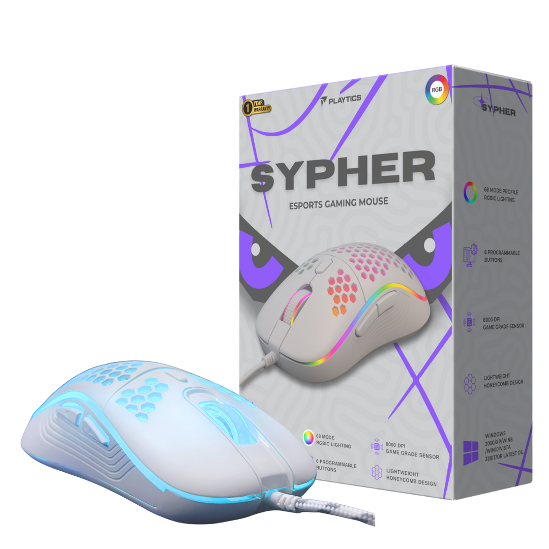 Designed for precision, comfort, and speed, this ultra-lightweight wired mouse is a must-have for every gamer. Available in Frost White and Void Black, it features customizable RGB lighting, ergonomic honeycomb design, and software-backed performance for pro-level gameplay.